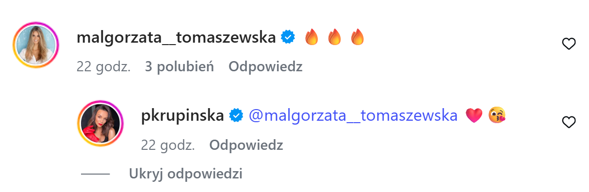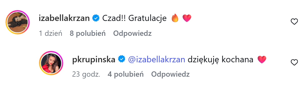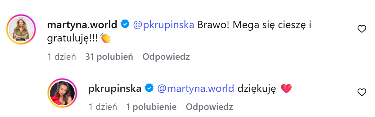 W podobnym tonie wypowiedziała się Martyna Wojciechowska, gratulując i podkreślając, że świetnie widzi Paulinę w tej roli. Co ciekawe, pozytywnie zareagowały również te prezenterki, które według medialnych doniesień – miały walczyć o ten angaż. Izabella Krzan napisała krótko i entuzjastycznie: „Czad!! Gratulacje”, a Małgorzata Tomaszewska zostawiła symboliczne, potrójne emotikony ognia, sugerujące pełne poparcie i brak jakiejkolwiek zazdrości.