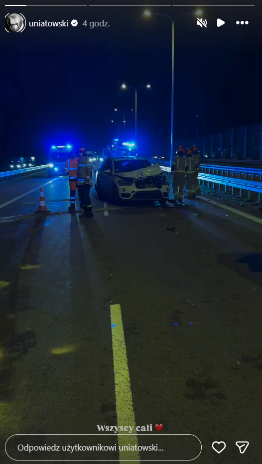 To właśnie na Instagramie artysta zamieścił niepokojące zdjęcie rozbitego pojazdu, dodając krótki, ale wymowny komunikat: „Wszyscy cali”. Fani od razu zaczęli zasypywać go wiadomościami wsparcia, choć fotografia nie pozostawia złudzeń – zdarzenie mogło skończyć się znacznie gorzej. Sam Uniatowski nie ukrywał, że to, co wydarzyło się w drodze na koncert, było ogromnym szokiem.