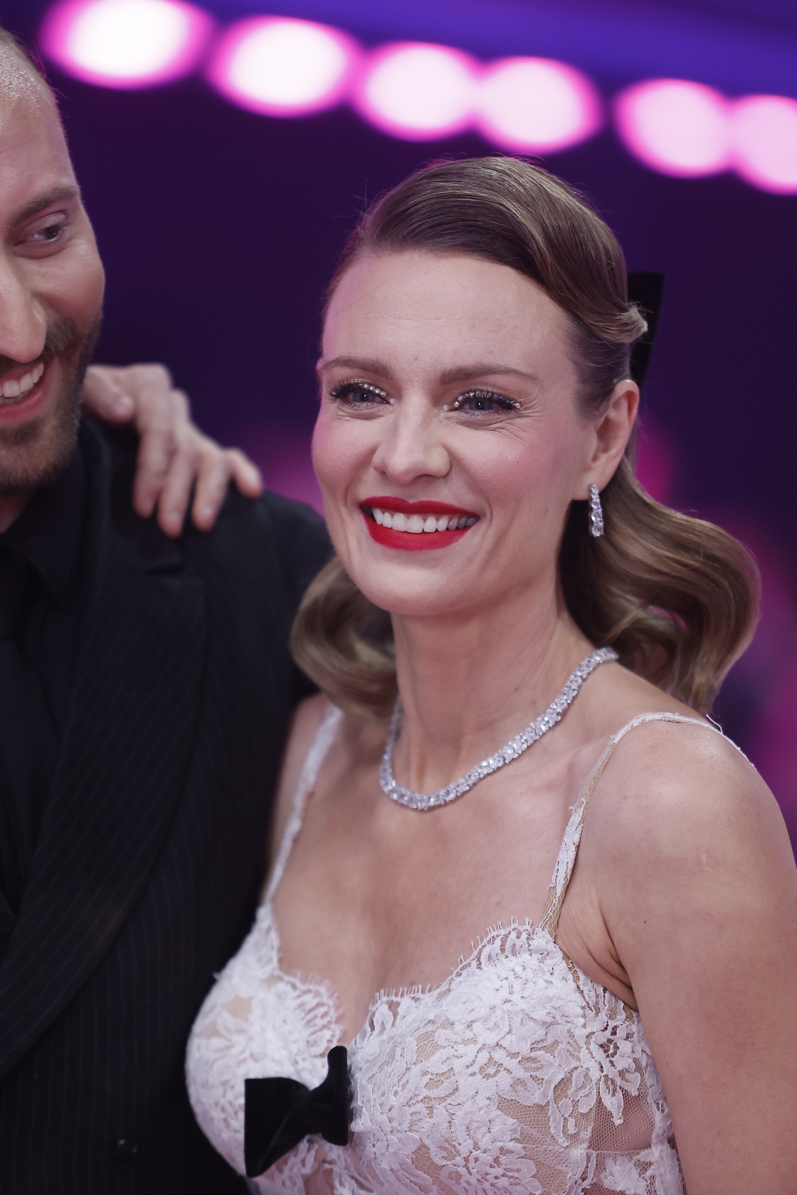 Z kolei Jacek Jelonek, z którym rywalizowała w programie, postawił na elegancki, klasyczny garnitur w odcieniu szarości. Dwurzędowa marynarka zestawiona z czarną koszulą i muszką nadaje całości wieczorowy, bardzo dopracowany charakter, łącząc szyk z lekkim, eventowym luzem.