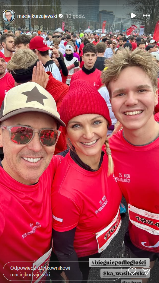 W biegu wzięła również udział Katarzyna Wasilewska, żona brata dziennikarza. Razem stworzyli pełną energii, rodzinno-sportową ekipę, która z uśmiechem na twarzy przebiegła całą trasę. Na zdjęciach, które Kurzajewski opublikował w sieci, widać go w biało-czerwonej koszulce z numerem startowym i dumą malującą się na twarzy.