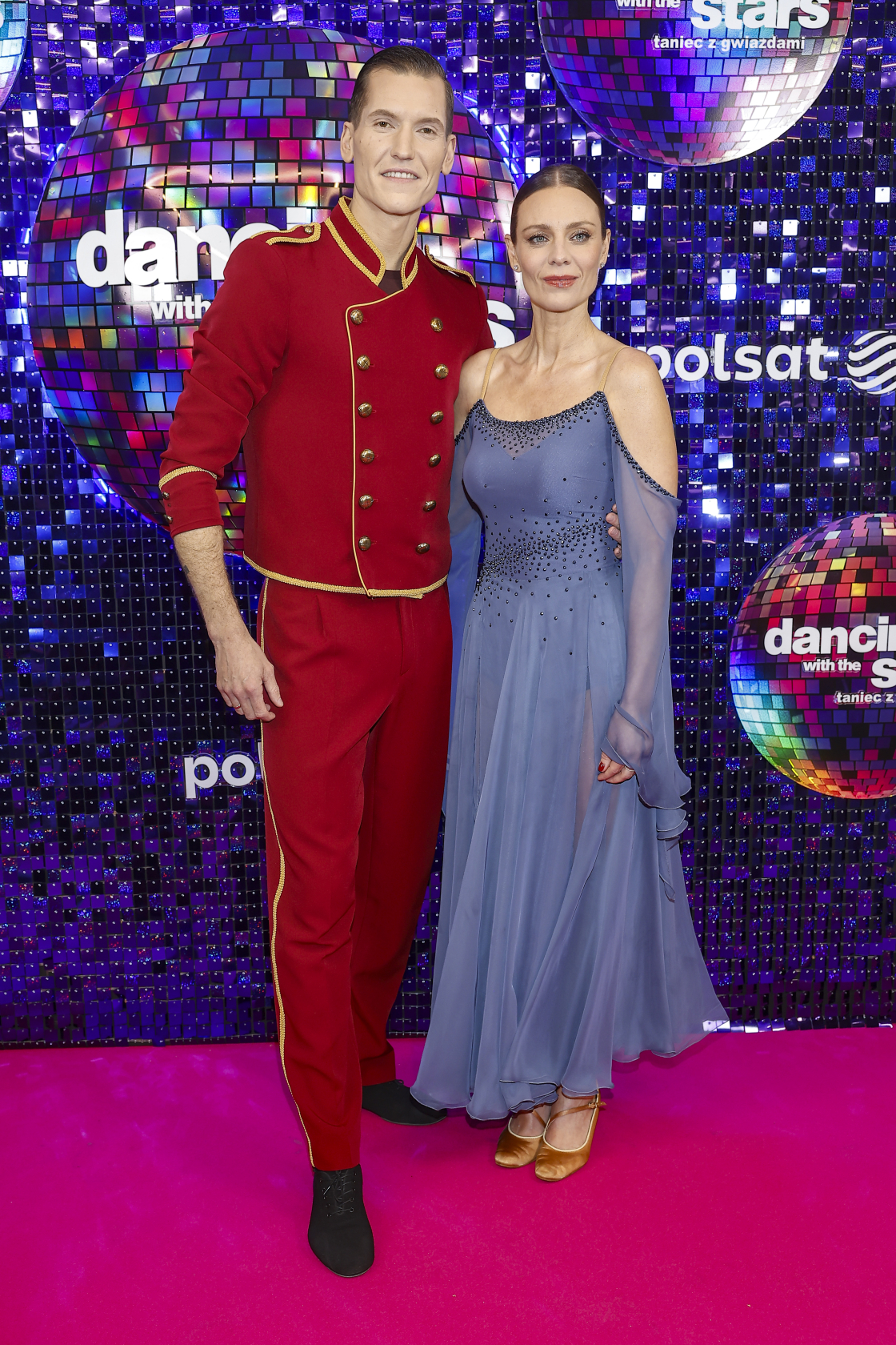 Z kolei Jacek Jelonek, z którym rywalizowała w programie, postawił na elegancki, klasyczny garnitur w odcieniu szarości. Dwurzędowa marynarka zestawiona z czarną koszulą i muszką nadaje całości wieczorowy, bardzo dopracowany charakter, łącząc szyk z lekkim, eventowym luzem.
