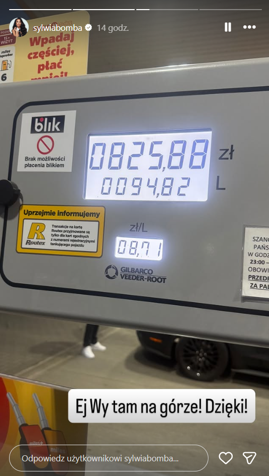 Z tym właśnie zderzyła się Sylwia Bomba, która postanowiła podzielić się swoją reakcją. Po wizycie na stacji paliw zapłaciła 825 złotych za tankowanie, co wyraźnie ją zirytowało. W emocjonalnym wpisie napisała: “Ej wy tam na górze! DZIĘKI!”, dając upust frustracji wobec sytuacji, na którą – jak wielu innych – nie ma żadnego wpływu.