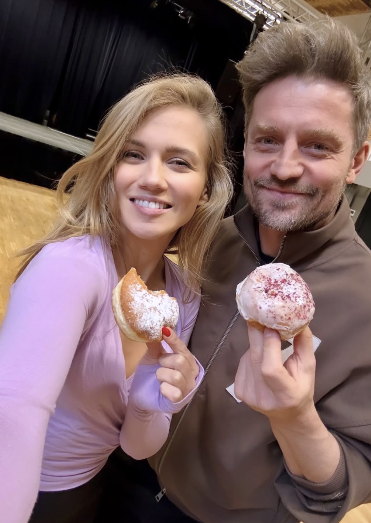 W słodkie świętowanie włączyli się także Agnieszka Kaczorowska i Marcin Rogacewicz, którzy opublikowali w sieci zdjęcia prosto z sali prób do spektaklu „Siedem”. Zakochani połączyli obowiązki zawodowe z Tłustym Czwartkiem i w przerwie między scenami pozwolili sobie na chwilę cukrowej przyjemności. Na fotografiach widać, jak z uśmiechem karmią się pączkami niemal „z dziubków”, nie kryjąc czułości i świetnego humoru.