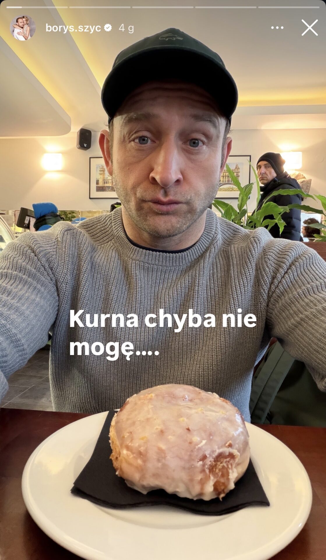 Borys Szyc z kolei pokazał się w bardziej refleksyjnym wydaniu – na zdjęciu zamyślony spoglądał na talerzyk z pączkiem, jakby prowadził wewnętrzną debatę: jeść czy nie jeść? Jak wiadomo, aktor bardzo dba o formę i sylwetkę, ale w Tłusty Czwartek nawet on nie potrafił oprzeć się pokusie.