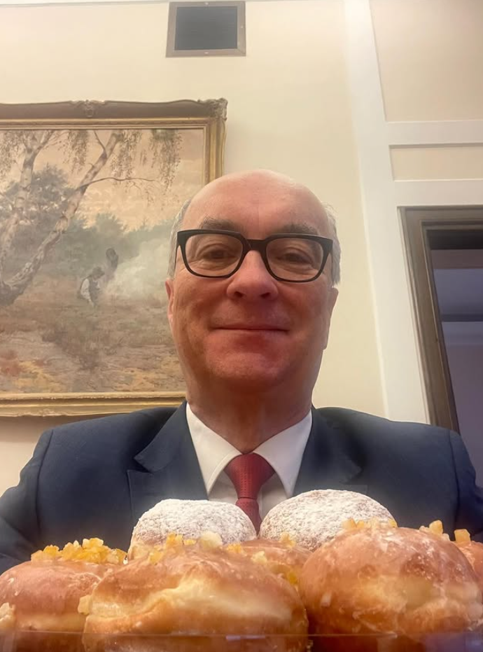 Włodzimierz Czarzasty postawił na klasyczną elegancję, ale w bardzo słodkim wydaniu. W sieci pokazał się w biurowym otoczeniu, a uwagę wszystkich skradł nie on, lecz imponujący stos pączków ustawionych tuż przed nim. Trudno było oderwać wzrok od tej apetycznej sceny.